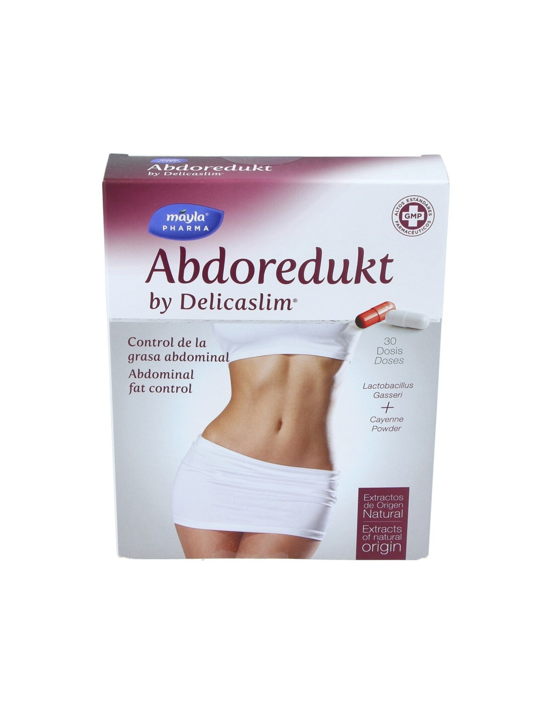 Complemento alimenticio que ayuda a controlar la grasa abdominal y reducir abdomen. Contiene 10 millones de microorganismos activos de Lactobacillus gasseri, una cepa bacteriana que proviene originalmente de la leche materna. La fórmula se completa con extracto de cayena, calcio, zinc, cromo y vitamina D3. Propiedades que aportan como, contribución al metabolismo energético y al funcionamiento normal de las enzimas digestivas, el mantenimiento de los niveles normales de glucosa en sangre, y al metabolismo normal de los hidratos de carbono y los ácidos grasos, y el mantenimiento normal de los macronutrientes. Formato de 30 cápsulas.