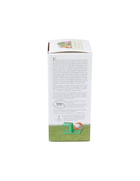 Aceite corporal para niños que ayuda a proteger la piel o limpiar el culito y es ideal para un masaje hidratante y relajante después del baño. Contiene aceites de caléndula orgánico, girasol orgánico, salvado de arroz, almendras dulces y algodón, 99% de origen natural. Tolerancia cutánea clínicamente probada.