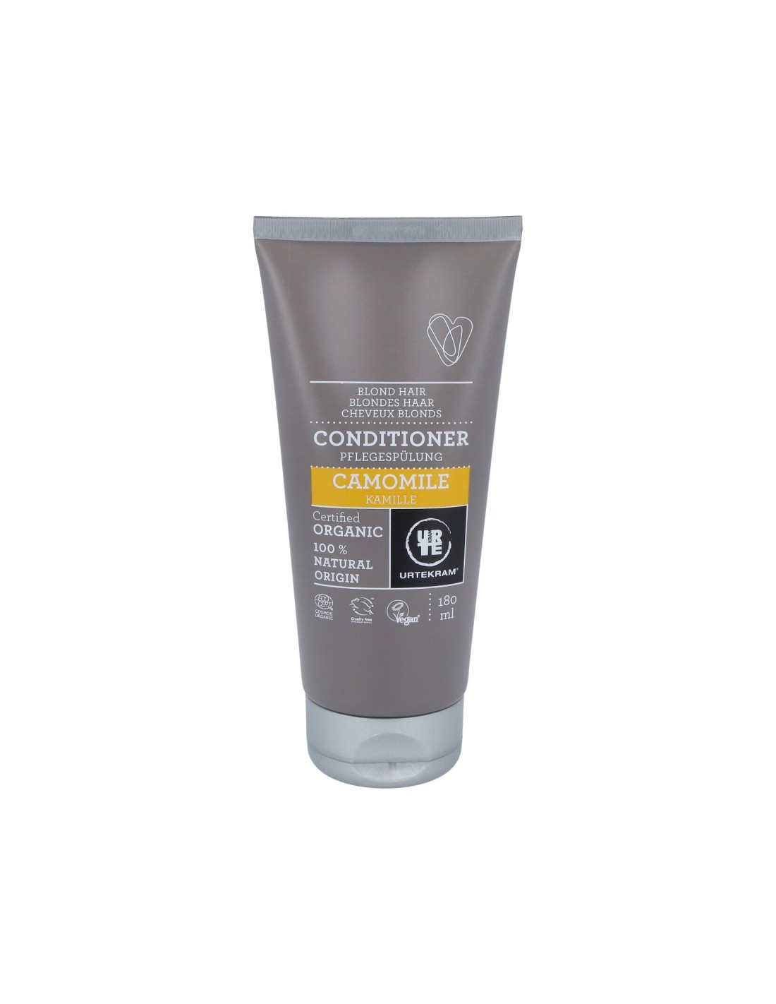 Acondicionador elaborado a base de ingredientes naturales. Este acondicionador de manzanilla ayuda a dejar el pelo suave, suelto y brillante. Su fórmula con ingredientes 100% naturales contribuye a nutrir y hidratar el cabello en profundidad aportando suavidad y movimiento al mismo. Indicado para cabellos rubios ya que ayuda a mantener el color y potenciar el brillo del mismo. Su textura suave y cremosa es de fácil aplicación. Apto para veganos, no testado en animales.
