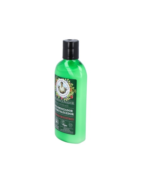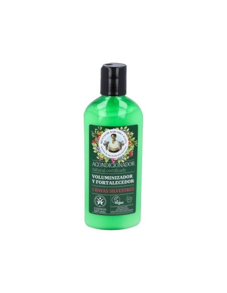 El Acondicionador Voluminizador y Fortalecedor, con una fórmula única que contiene espino amarillo Altai, Frambuesa nórdica, Arándanos y Enebro, que ayuda a hidratar el cabello, reduciendo su caída y proporcionando un brillo muy intenso a la melena. El aporte de vitamina C ayuda a conseguir más fuerza en el cabello, y sus aceites esenciales protegen el brillo y el color, además tiene propiedades antisépticas y purificantes para ayudar a activar la raíz del cuero cabelludo y así conseguir un mayor volumen. Se recomienda utilizar junto con el Green Agafia Champú Capilar Natural Voluminizador y Fortalecedor.
