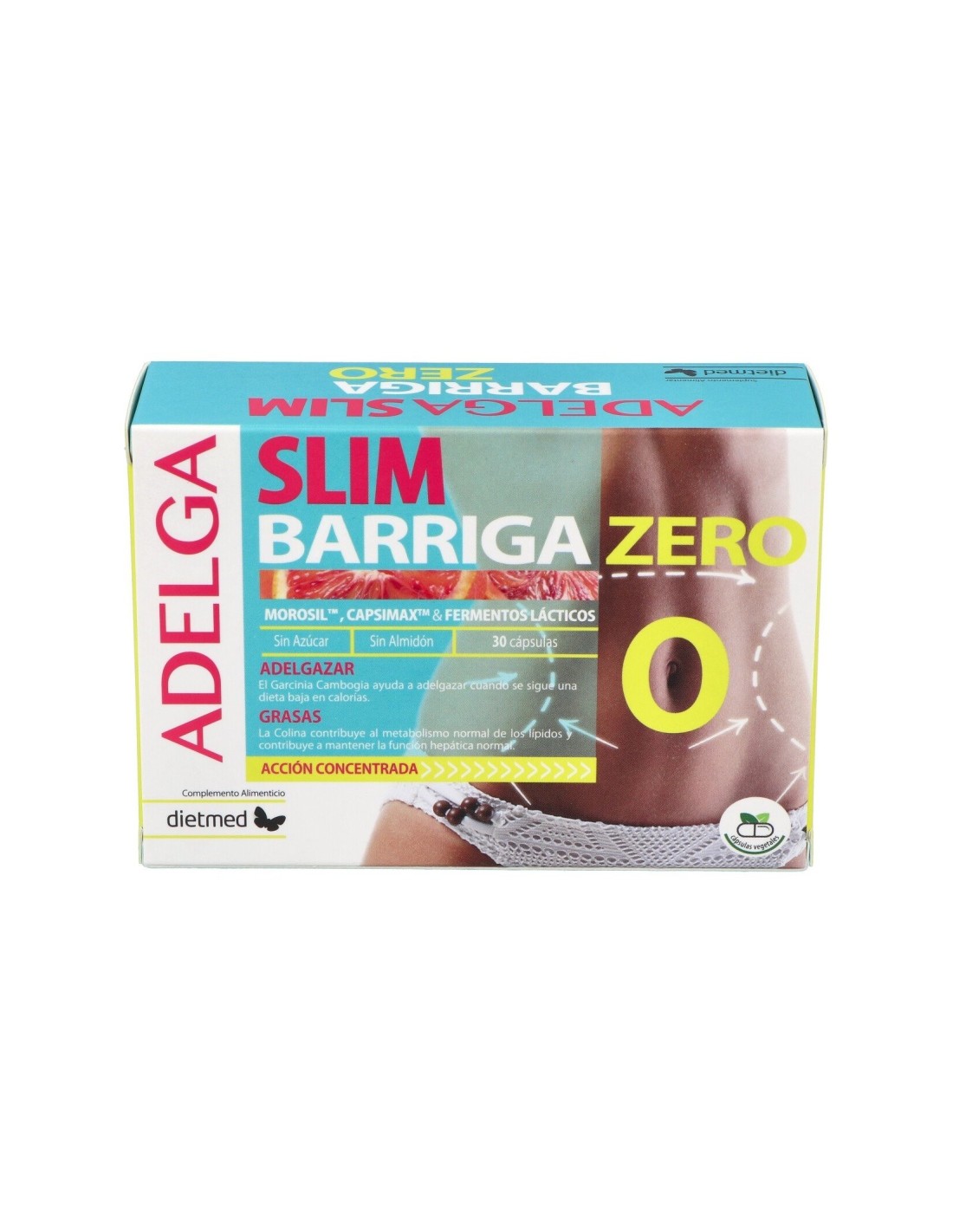 Dietmad Adelga Slim Barriga Zero 30caps es un complemento alimenticio idóneo para completar y favorecer los resultados de una dieta baja en calorías y enfocada al adelgazamiento, dentro de un estilo de vida saludable y activo.