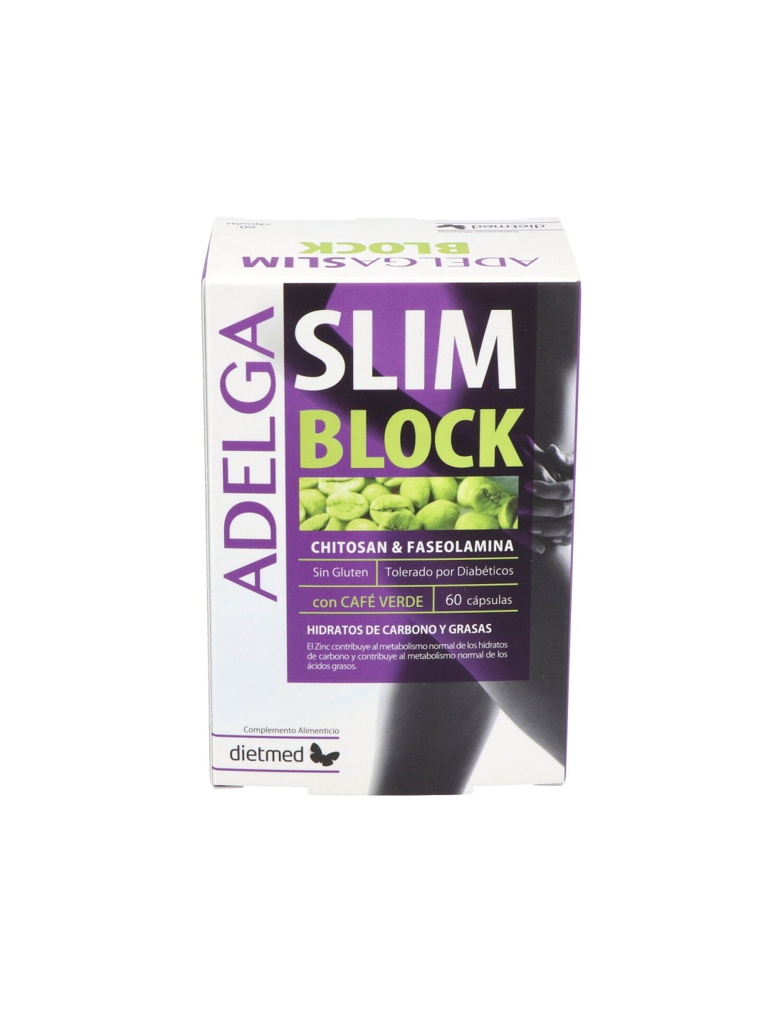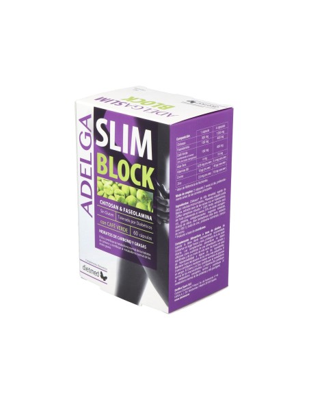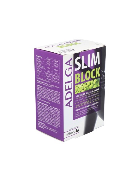 Dietmed Adelga Slim Blok 60caps es un complemento alimenticio para la ayuda de control de peso. Su composición ayuda a bloquear la absorción de hidratos de carbono y grasas, reduciendo los desequilibrios alimentarios. El producto tiene gran tolerancia, siendo apto incluso para personas diabéticas.