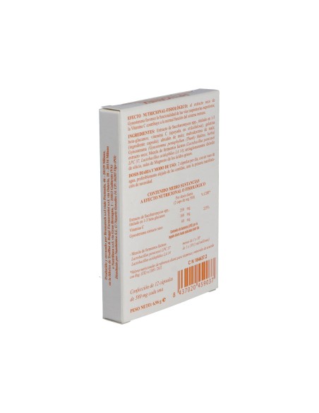 · Complemento alimenticio en formato cápsula, formulado con fermentos lácticos que promueven el equilibrio de la flora intestinal, y vitamina C, que contribuye al funcionamiento normal del sistema inmunológico.· También indicado para personas con síntomas rino-nasales después de la exposición al polvo o polen, gracias a la liberación de histamina.