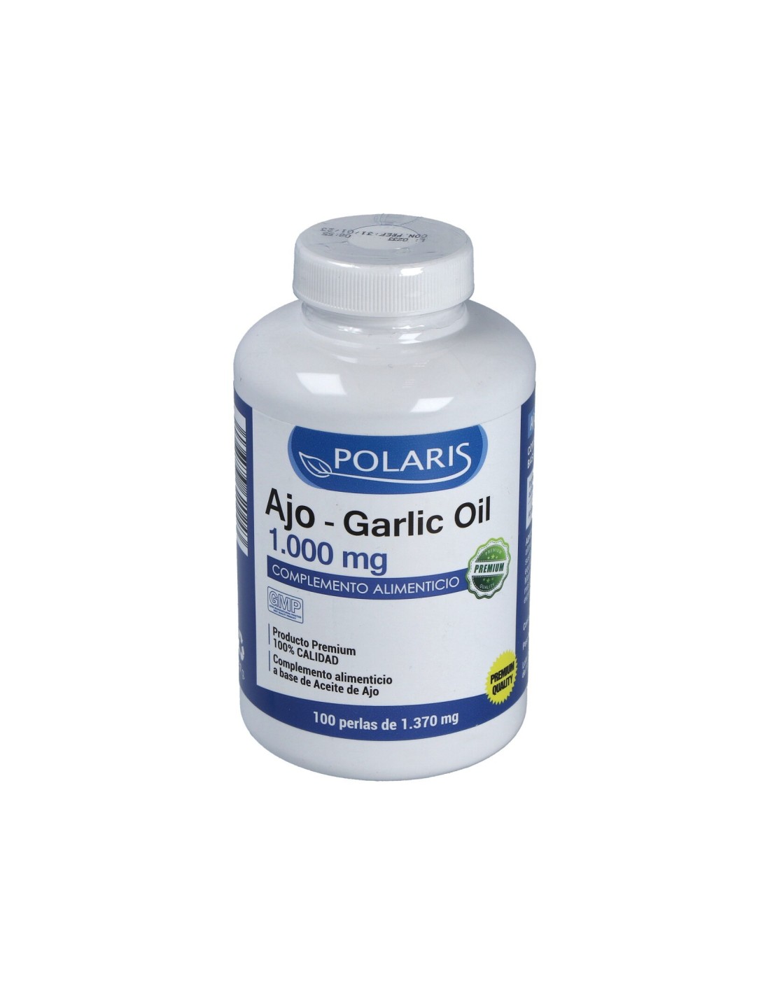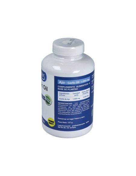 Complemento alimenticio a base de aceite de ajo.Precauciones:No se han descrito.Composición:Aceite de ajo 1000 mg , agente de recubrimiento (gelatina y glicerina).Modo de empleo:Tomar 1 perla, 3 veces al día.