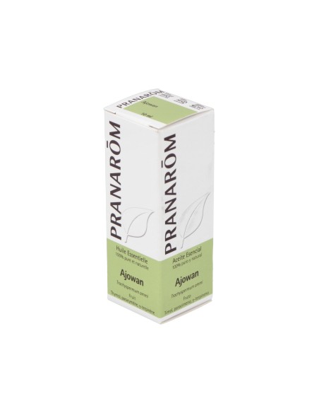Aceite esencial de ajowan.Precauciones:Salvo por indicación de un médico, no utilizar durante el embarazo, lactancia ni en niños menores de 3 años.Composición:Aceite esencial de Trachyspermum ammi (ajowan), obtenido de la destilación del fruto.Moléculas aromáticas: Timol, paracimeno, y-terpineno.Modo de empleo:Ver envase.