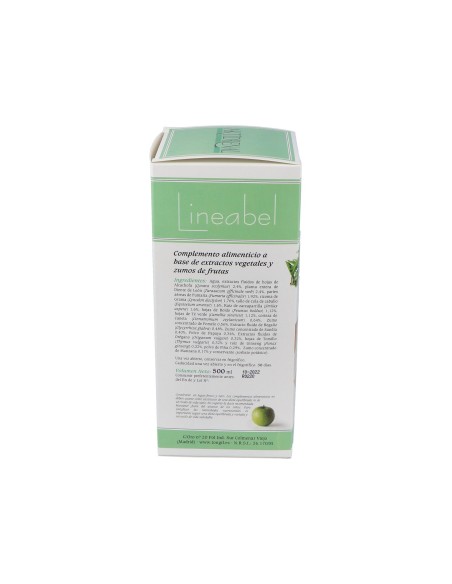 Agua, Extractos fluidos de Alcachofa (2,4%), Diente de León (2,4%), Fumaria (1,92%), Grama (1,76%),Cola de Caballo (1,6%), Zarzaparilla (1,6%), Boldo (1,12%), Té verde (1,12%), Canela (0,64%), Zumo concentrado de Pomelo (0,56%), Extracto fluido de Regaliz (0,48%), Zumo concentrado de Sandía (0,40%), Polvo de Papaya (0,34%), Extractos fluidos de Orégano (0,32%), Tomillo (0,32%) y Ginseng (0,32%), Polvo de Piña (0,29%) y Zumo concentrado de Manzana (0,17%), conservador: sorbato potásico.