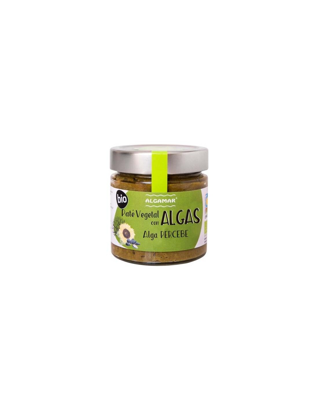 Paté de algas marinas de Galicia percebe, 100% orgánicas. Elaborado con algas marinas, pipas de girasol, aceite de oliva extra virgen , agua, vinagre de sidra y ajo. Con ingredientes de origen ecológico. Las algas son fuente de minerales como el yodo, hierro, magnesio, calcio, fósforo, sodio, potasio, cobre y zinc. Recomendado para dipear con verduras, tostadas o snacks. Apta veganos.