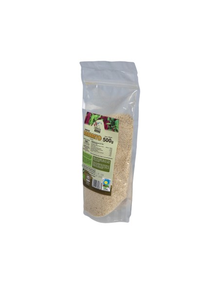 Copos de Amaranto (Amaranthus caudatus), el amaranto es una semilla tradicional andina, muy cercana a la quinoa, tiene un sabor muy fino y aromático, sus semillas también son muy pequeñas. Composición elaborada con ingredientes de agricultura ecológica. Está recomendado para consumirlo solo o combinarlo con otros alimentos o como guarnición. También es muy habitual su uso en panadería tanto en formato de copos como en harina.