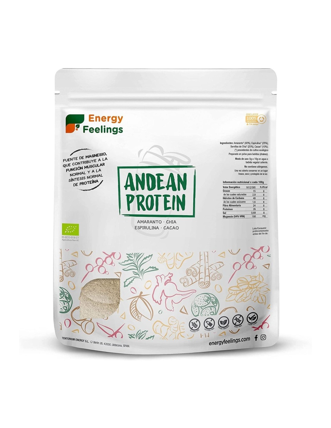 Amaranto, Chía, Espirulina, Cacao.