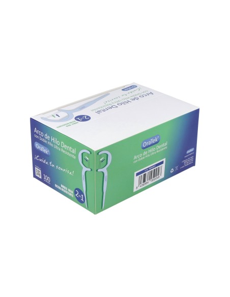 Oratek Arco Hilo Dental Doble Hilo 100 Unidades Individuales arcos de hilo dental muy recomendados por dentitas como la mejor opción del hilo dental. Son una perfecta combinación de palillo y arco de hilo dental. Es el único Arco de Hilo Dental con doble hilo en el mercado, es decir que dobla la efectividad del arco en cada pasada. Fabricado con un ultra fuerte hilo de fibra de Polietileno que es también suave para los dientes.