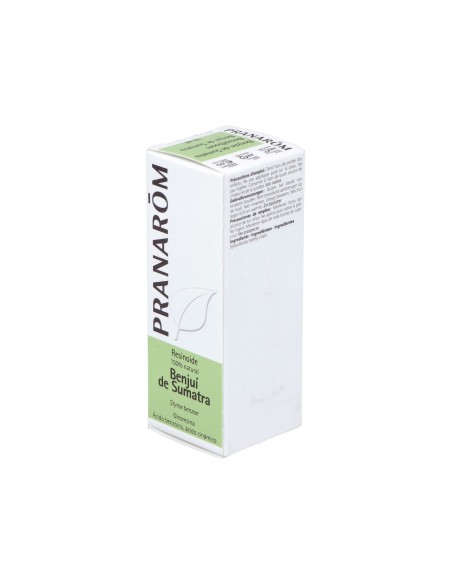 Antiséptico, antidepresivo, astringente, anti-inflamatorio, carminativo, cordial, desodorante, diurético, expectorante, sedante y vulnerario.Precauciones:Salvo por indicación de un médico, no utilizar durante el embarazo, lactancia ni en niños menores de 3 años.Composición:Aceite esencial de Styrax benzoe (benjuí de Sumatra), obtenido de la destilación de la oleoresina.Moléculas aromáticas: Ácido benzoico, ácido cinámico.Modo de empleo:Ver envase.