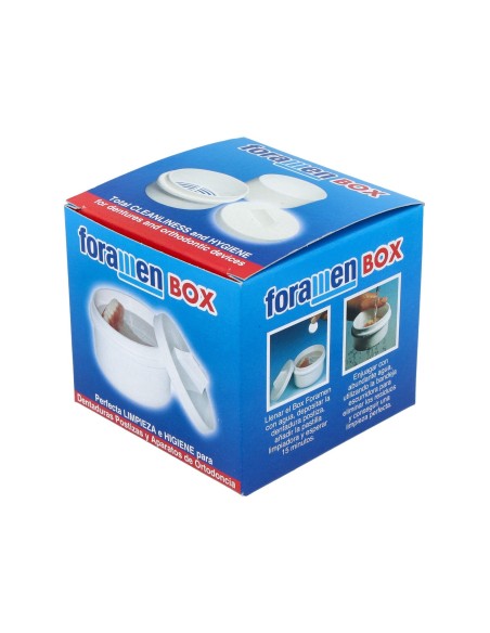 Diseñado para conseguir una perfecta limpieza e higiene de la dentadura postiza y aparatos de ortodoncia, aislándolos de polvo y agentes externos.Precauciones:No se han descrito.Composición:Caja de limpieza.Modo de empleo:Usar para la limpieza de prótesis.