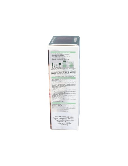 Tintura para cabello color castaño cobrizo. Aporta un color duradero con mucho brillo. Deja el cabello suave por su contenido de ocho extractos vegetales, con acción nutritiva sobre la fibra capilar. Cubre el 100% de las canas. Es un producto vegano, elaborado sin parabenos, amoniacos ni fragancias. Sirve para realizar dos tinturas. No causa reacciones alérgicas. Indicado para todo tipo de cabellos.