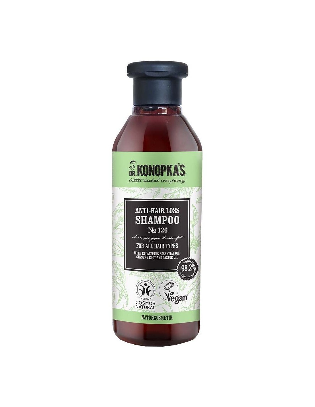 Este champú está formulado especialmente para el cabello débil con tendencia a la caída: le devuelve su plenitud y fuerza. La raíz de ginseng orgánica, el aceite de ricino y el aceite esencial de eucalipto fortalecen el cabello de la raíz a las puntas, reducen la caída, revitalizan el cuero cabelludo y proporcionan nutrición intensa para que el cabello crezca fuerte. Certificado BDIH Cosmos Natural y Vegan.