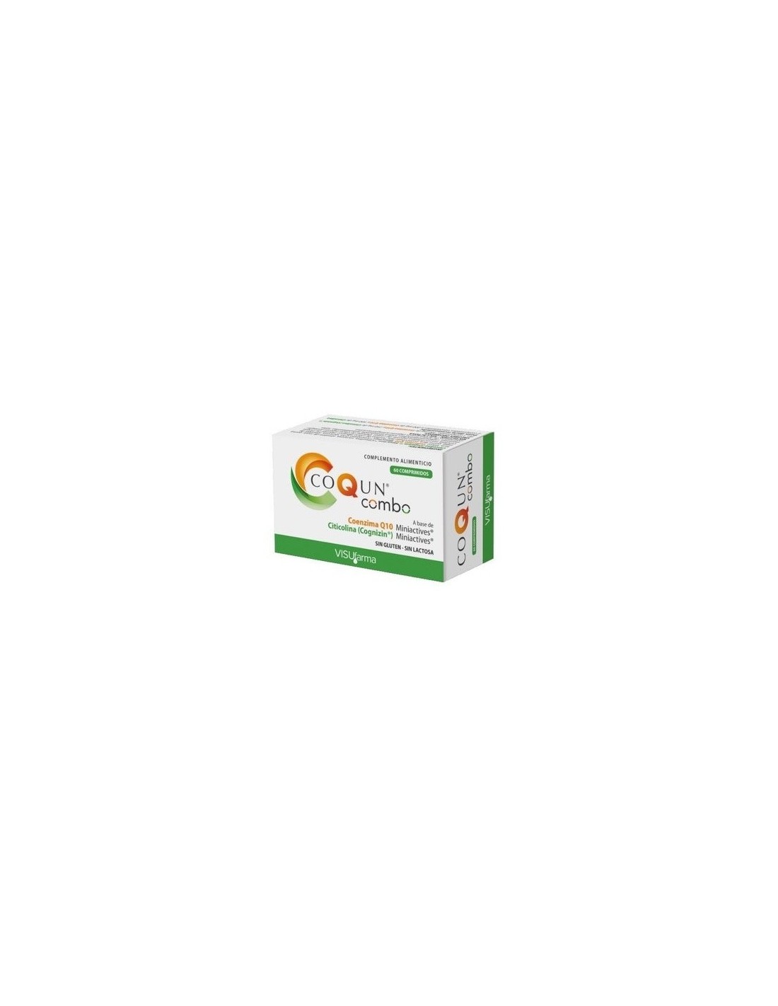 Complemento alimenticio formulado con una combinación única de Coenzima Q10 y Citicolina (Cognizin) en una formulación de alta calidad. Presenta tecnología patentada Miniactives de liberación controlada, CoQun combo libera Coenzima Q10 y Citicolina (Cognizin) a nivel intestinal de buena absorción. La rica composición contribuye al buen funcionamiento de la estructura del nervio óptico.
