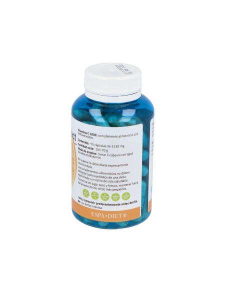 Complemento alimenticio con bioflavonoides. La vitamina C contribuye al funcionamiento normal del sistema inmunitario.Precauciones:Los complementos alimenticios no deben usarse como sustitutos de una dieta equilibrada ni de un modo de vida sano.No superar la dosis recomendada.Mantener fuera del alcance de los niños más pequeños.Composición:Vitamina C (ácido ascórbico), bioflavonoides de citrus aurantium, Cubierta: cápsula de gelatina.Por 1 cápsula:Vitamina C ……………………………… 1000 mgBioflavonoides ………………………….. 10 mgModo de empleo:Tomar 1 cápsula con agua durante el desayuno.
