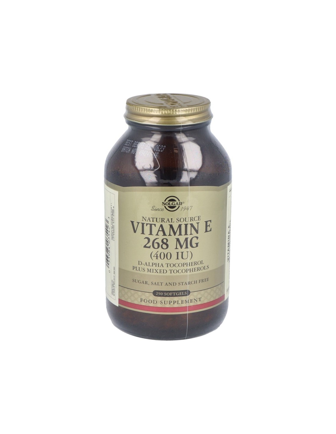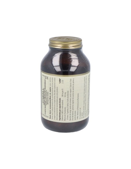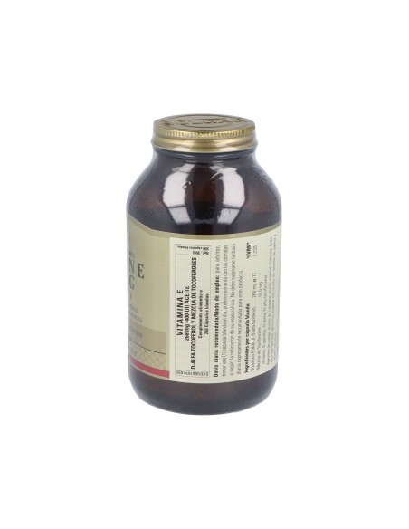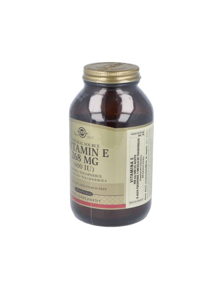 Poderoso antioxidante que ayuda a proteger los ácidos grasos del cuerpo y a mantenerse fuerte frente a algunas enfermedades.Precauciones:No recomendado para niños.Composición:Por 1 cápsula:Vitamina E (400 UI, D-alfa-tocoferol)…………. 268 mg a-TE Mezcla de tocoferoles (tocoferoles D-beta, D-gamma, D-delta, D-alfa)…18,5 mgCubierta de la cápsula blanda: gelatina (de origen bovino), glicerina vegetal (de aceite de semilla de palma y aceite de coco): aceite de cártamo.Modo de empleo:Tomar 1 cápsula al día, preferentemente con las comidas o según indicación de un especialista.