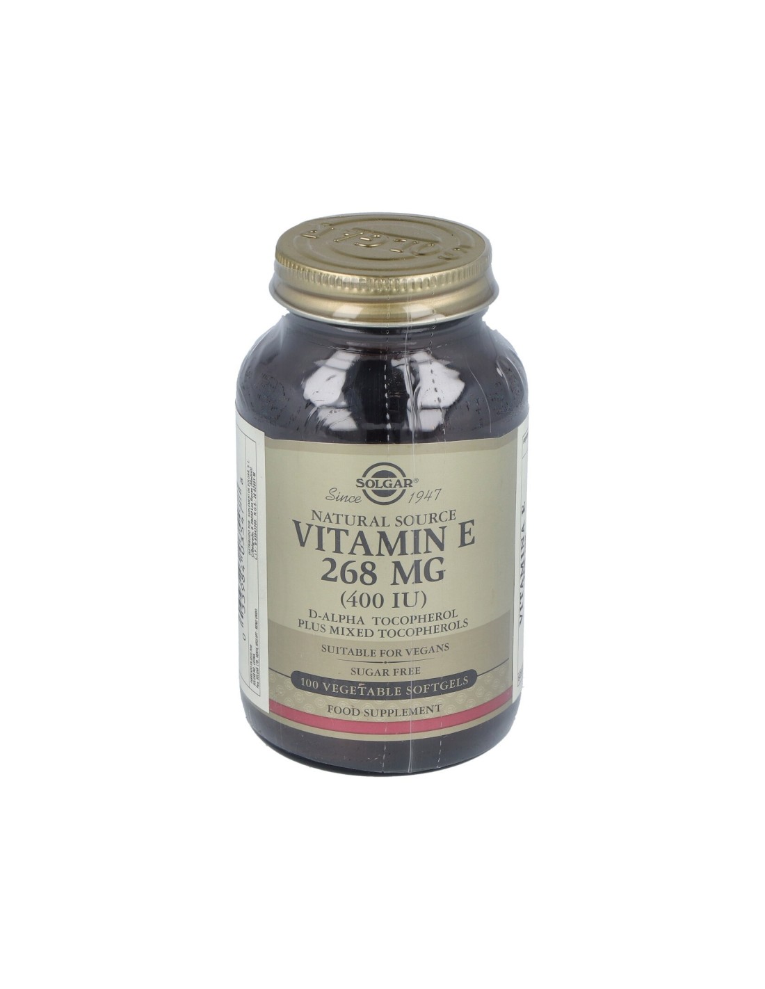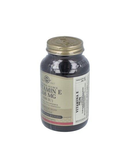 Poderoso antioxidante que ayuda a proteger los ácidos grasos del cuerpo y a mantenerse fuerte frente a algunas enfermedades. Apto para veganos.Precauciones:No recomendado para niños.Composición:Por 1 cápsula:Vitamina E………………………………………..268 mg (400 UI, d-alfa tocoferol)Mezcla de tocoferoles de soja…………………25 mgAceite de cártamo, lecitina de soja. Cápsula blanda vegetal: almidón de maíz modificado, glicerina vegetal, carragenina, regulador de acidez: fosfato sódico.Modo de empleo:Tomar 1 cápsula al día, preferentemente con las comidas o según indicación de un especialista.