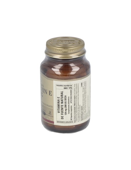Implicada en el funcionamiento del sistema inmunitario, tiene como función principal su efecto antioxidante. Apto para veganos.Precauciones:No recomendado para niños.Composición:Por 1 cápsula:Vitamina E (200 UI, succinato ácido de D-alfa-tocoferilo)…134 mg a-TE Diluyente: celulosa microcristalina: cubierta de la cápsula vegetal: hidroxipropilmetilcelulosa: antiaglomerantes: estearato de magnesio vegetal, dióxido de silicio.Modo de empleo:Tomar 1 cápsula vegetal al día, preferentemente con las comidas o según indicación de un especialista.