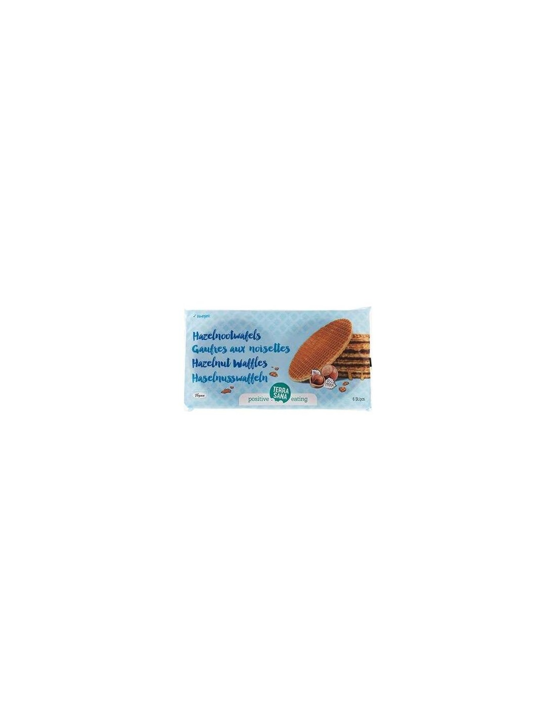 Gofres veganos.Precauciones:No se han descrito.Composición:Jarabe de trigo*, harina de trigo*, grasas vegetales* (aceite de palma*, aceite de girasol*), avellanas* 7,5%, jarabe de agave*, proteína de girasol*, salvado de trigo*, sal marina, levadura: bicarbonato sódico,emulsionante: lecitina de girasol*, canela*, zumo de limón. *Contiene gluten.