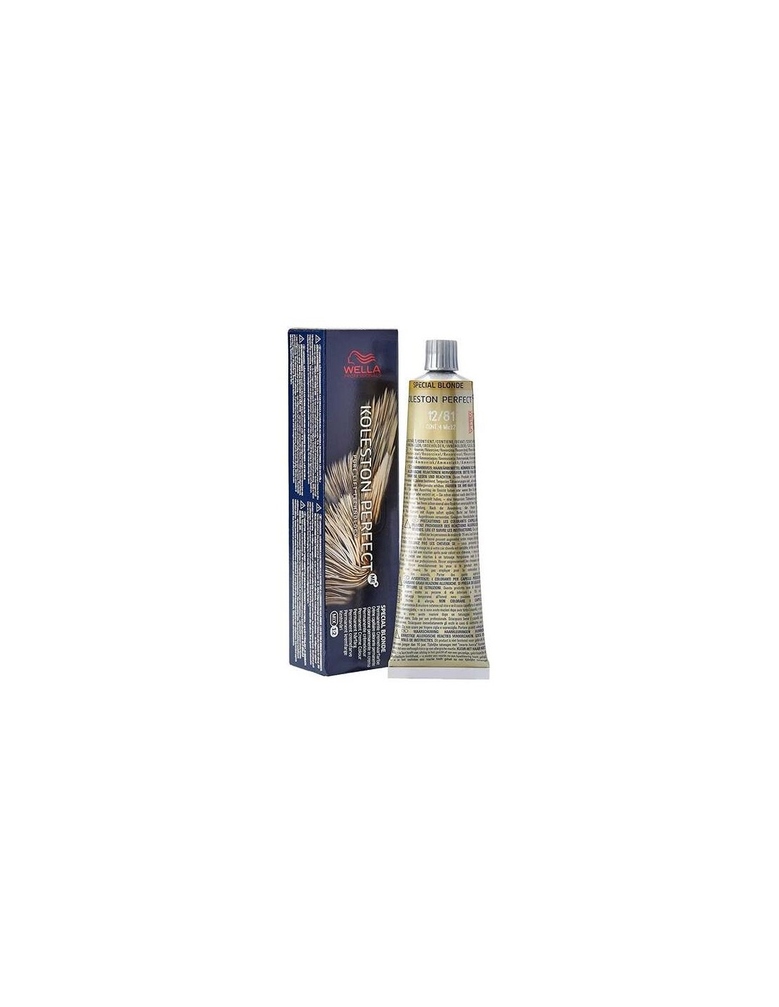 Wella Koleston Perfect Me+ Special Blonde 12-81 60ml es un tinte que contribuye a conseguir una cobertura total de las canas y consigue aclarar hasta 5 tonos. Sus pigmentos ayudan a potenciar el brillo del cabello. Color dorado.