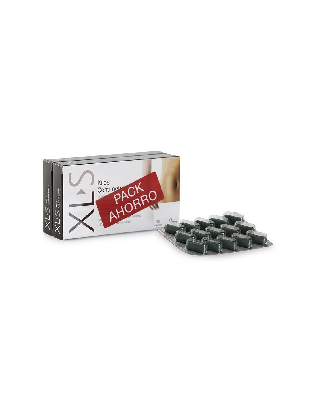 XLS Kilos Centímetros 2x30comp es un complemento alimenticio, para potenciar la acción reductora de las dietas de seguimiento y el control del peso. XL-S contiene dos packs de 30 comprimidos cada uno, que actúan ayudando a reducir la acumulación de lípidos y líquidos, en zonas del cuerpo como el vientre, piernas y tobillos.