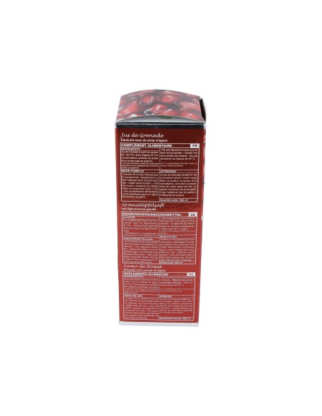 Jugo concentrado de granada, hecho de manera natural y endulzado con sirope de ágave, cuenta con un delicioso sabor natural. Este zumo tiene una gran concentración de flavonoides, antocianidinas, polifenoles, catequinas, taninos, ácidos elágico y gálico, vitaminas A, B y C, potasio, fósforo, magnesio, calcio y sodio. En donde los polifenoles y flavonoides aportan propiedades antioxidantes al cuerpo.